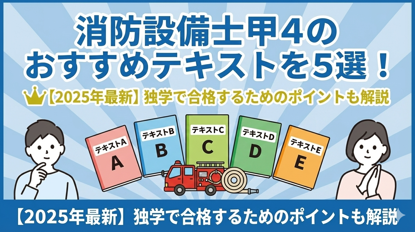 消防設備士甲4の受験を検討している方から寄せられる代表的な質問にお答えします。テキスト選びや勉強方法、試験の難易度について詳しく解説いたします。